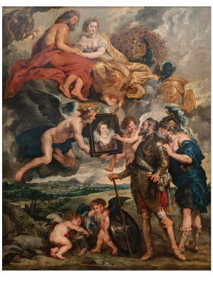 En Arts plastiques, les élèves de toutes les classes de quatrième, ont eu pour consigne de transformer ce tableau figuratif (le contraire d’abstrait) De Paul Rubens, intitulé Henri IV reçoit le portrait de Marie Médicis et se laisse désarmer par l’Amour (1621,1625), en œuvre abstraite.